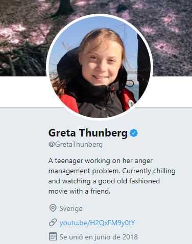 Luego de ocurrido el hecho, la joven de 16 años se tomó la situación con humor. Greta cambió su biografía de Twitter y escribió: “Una adolescente trabajando en su problema de control de la ira. Actualmente relajada y viendo una buena película antigua con un amigo“.