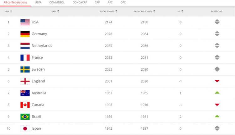 Dentro de los mejores equipos femeninos sudamericanos, las chilenas ocupan el cuarto puesto, por detrás de Brasil, Colombia y Argentina. Pero en el caso de la Roja... ¿Cómo queda en el ranking? Te lo mostramos acá: