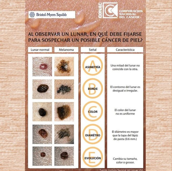 -Observa cambios en el color, textura, forma y tamaño de un lunar previo.