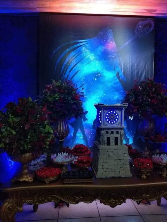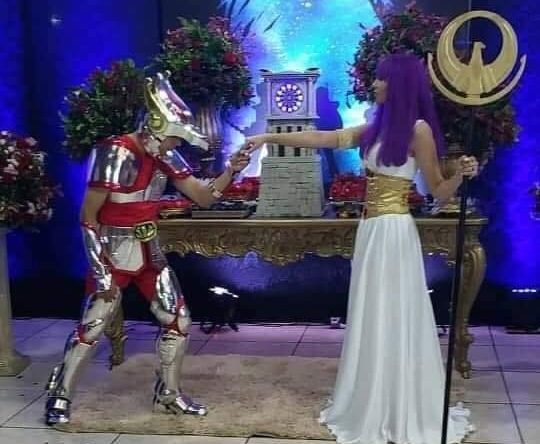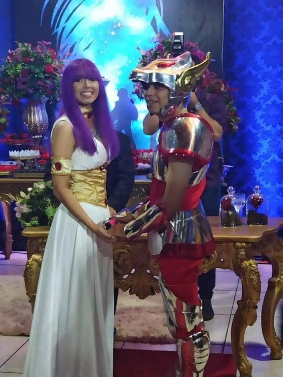 Él de Seiya, el caballero de Pegaso y protagonista de la serie, mientras que ella de Atena, la princesa. Su altar no quedó afuera de la curiosa ceremonia, ya que fue decorado al más puro estilo de “Los Caballeros del Zodiaco”, con una réplica del reloj del Santuario, para de la saga de “Las 12 casas”.
