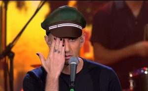 Para interpretarla, Anwandter se puso una gorra parecida a la que usa Carabineros, y se tapó un ojo para mostrar su apoyo a los cientos de heridos que han perdido los suyos en las protestas luego del 18 de octubre.