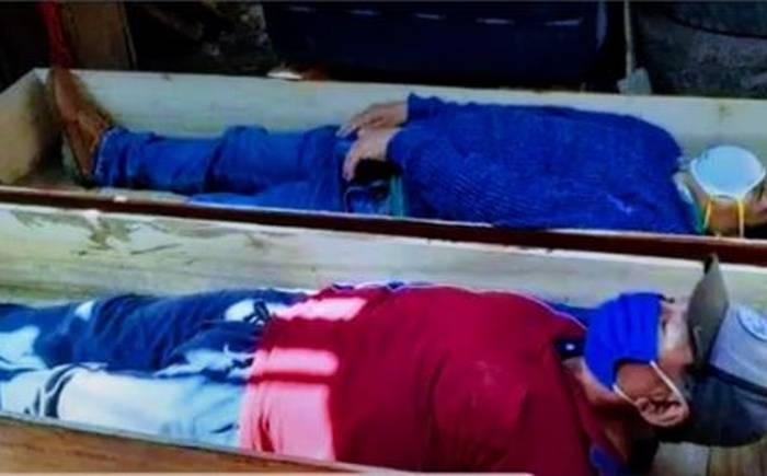 Urbina simplemente se metió al ataúd, se estiró boca arriba con una mascarilla puesta y se quedó quieto. Varios de sus acompañantes hicieron lo mismo, pero como era de esperar, la improvisada distracción no sirvió y los policías se llevaron tanto al alcalde y como a sus amigos a la comisaría.