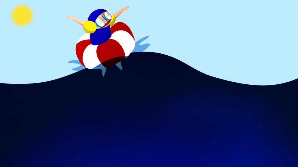 Exhibida en festivales como Ljubljana Short Film Festival, Anim! Arte-International Student Animation Festival of Brazil y PIAFF Paris, esta película nos habla sobre una mujer mayor de edad que intenta aprender a nadar. Equipada con todo lo que puede, se atreve a entrar en el mar.