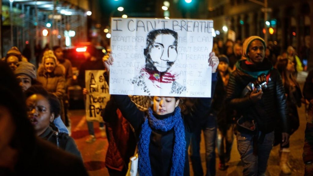 La imagen se va a negro, con el mensaje "No puedo respirar", y el sonido de los últimos y angustiantes momentos de George Floyd mientras era asfixiado.