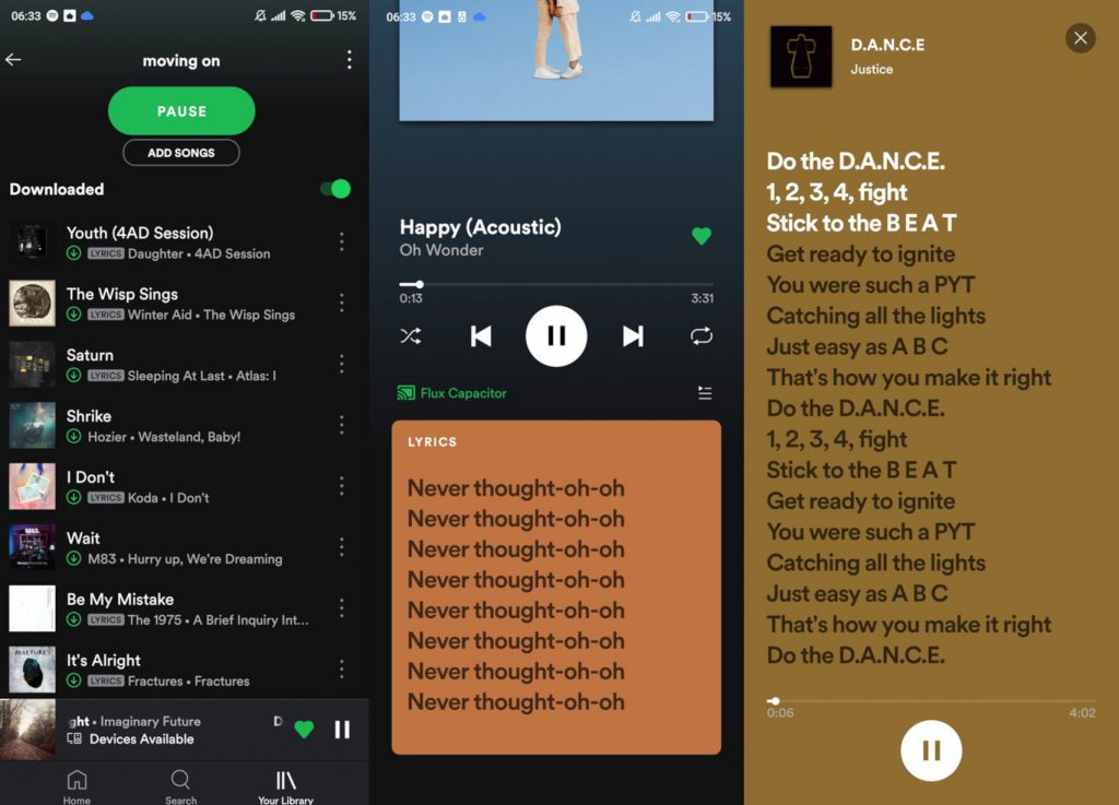 Esta función se materializa gracias a que Spotify se asoció con Musixmatch, el catálogo más grande del mundo de letras de canciones y traducciones. Esto permitirá que los usuarios vean la letra de sus canciones favoritas en tiempo real mientras utilizan Spotify. Las letras aparecerán en el idioma original y de manera progresiva estarán todas disponibles.