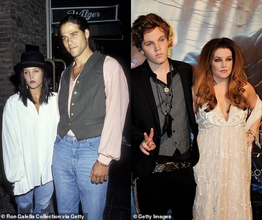 Izquierda: Lisa Marie Presley y el padre de Benjamin, Danny Keough. Derecha: Benjamin y su mamá.
