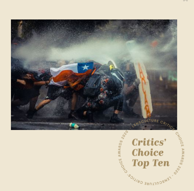 Javier Vergara, un fotógrafo chileno, fue uno de los 10 ganadores de la sección Critic's Choice en el concurso mundial de fotografía LensCulture por "Chile Resiste", una imagén que tomó en las manifestaciones del Estallido Social.