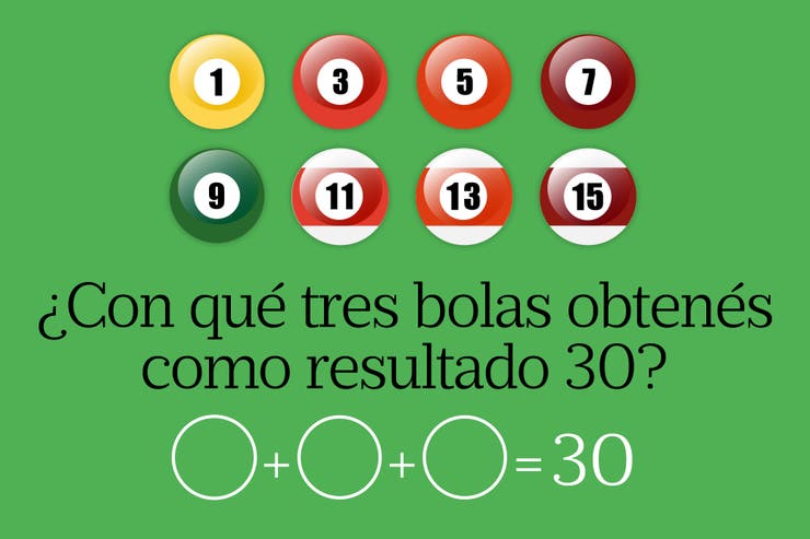 Antes de revelarte cualquier cosa, este es el acertijo y viene del diario La Nación de Argentina: Con las bolas de pool que tienes en esta imagen, tienes que encontrar la combinación exacta para sumar y llegar a 30.