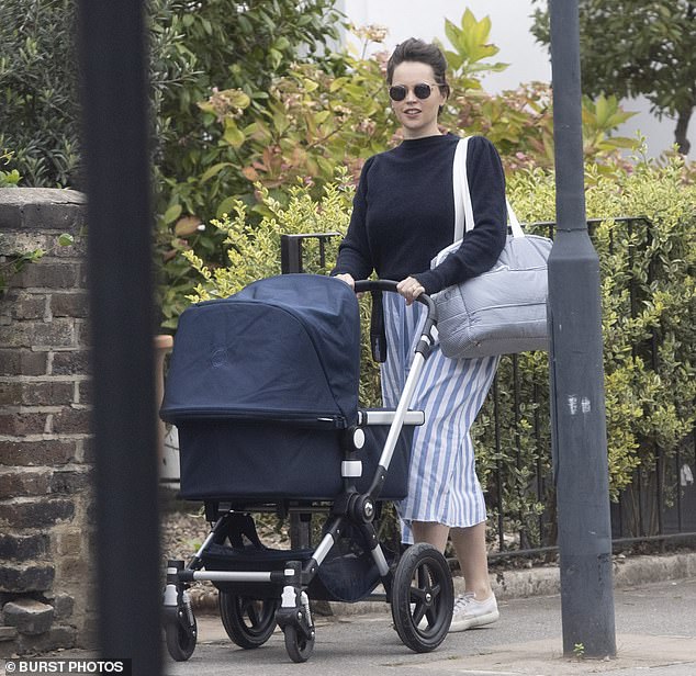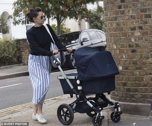 La actriz de 36 años fue fotografiada este viernes, empujando su coche por las calles de la capital inglesa sin bajar la sonrisa ni despegar los ojos de su hijo.