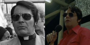 Evan Peters tuvo la difícil tarea de interpretar múltiples personajes reales en esta edición de American Horror Story. Entro otros, interpretó a Jim Jones, fundador del culto Templo del Pueblo. Jones se hizo conocido por ser responsable de uno de los suicidios en masa más conocidos de la historia, donde 917 de sus seguidores lo siguieron en 1978.