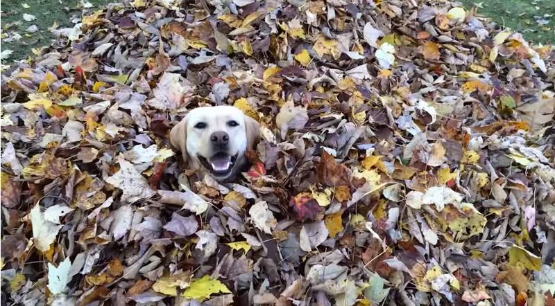 Le abren la puerta del auto y simplemente corre hacia ese montón de hojas para quedarse nadando entre la humedad y el sonido que cruje mientras ella se mueve. Ella es una perrita labrador, cuyos dueños han decidido registrar y compartir en videos cada vez que a ella se le presenta la oportunidad de poder lanzarse hacia estas hojas.