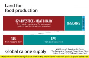 Además, el 83% de las tierras utilizadas para alimentos en el mundo son usadas en ganadería pero solo generan un 18% de las calorías. En cambio el 82% de las calorías consumidas por humanos son de alimentos vegetales, producidas en solo el 16% de las tierras, según el informe.