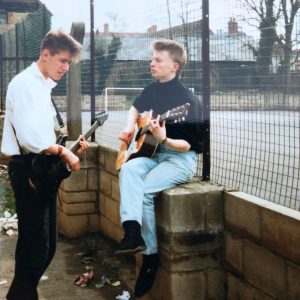 Este 7 de octubre, Yorke cumplió 52 años y su compañero de banda no quiso quedar ausente en la celebración. La fotografía data de abril de 1986, en los inicio de la banda en Abingdon. La imagen se tomó en una práctica de la banda en el Abingdon Community Centre.