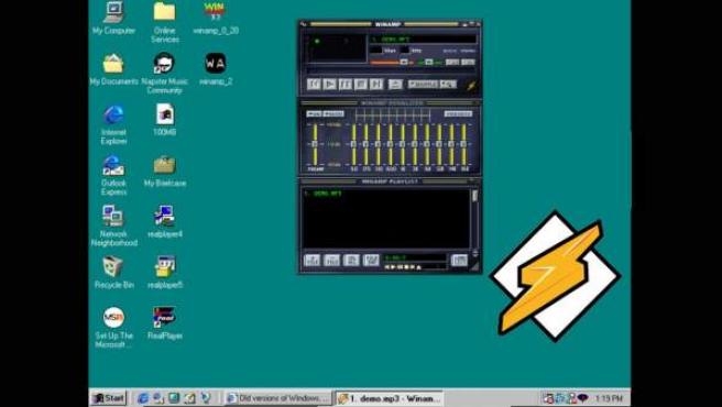 El reproductor fue creado el 21 de abril de 1997 para computadores con Windows, y te permitía ocupar "skins" o "carcazas digitales" para adornar estéticamente como tu más quisieras el menú Winamp donde se veían y reproducían las canciones. Todo esto, bajo el alero de su icónico rayo naranjo.