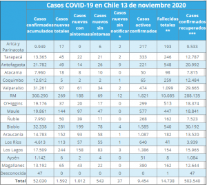 Viernes 13 de noviembre: 1.592 nuevos casos y 39 fallecidos por Covid-19