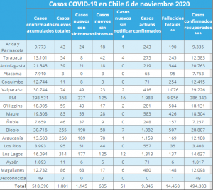 🔸 46 fallecidos inscritos (14.450 en total) pic.twitter.com/yPzUyAcUuj— Ministerio de Salud (@ministeriosalud) November 6, 2020