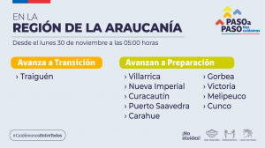 Avanzan a Preparación (Paso 3): Villa Rica, Nueva Imperial, Curacautín, Puerto Saavedra, Carahue, Gorbea, Victoria, Melipeuco, Cunco.