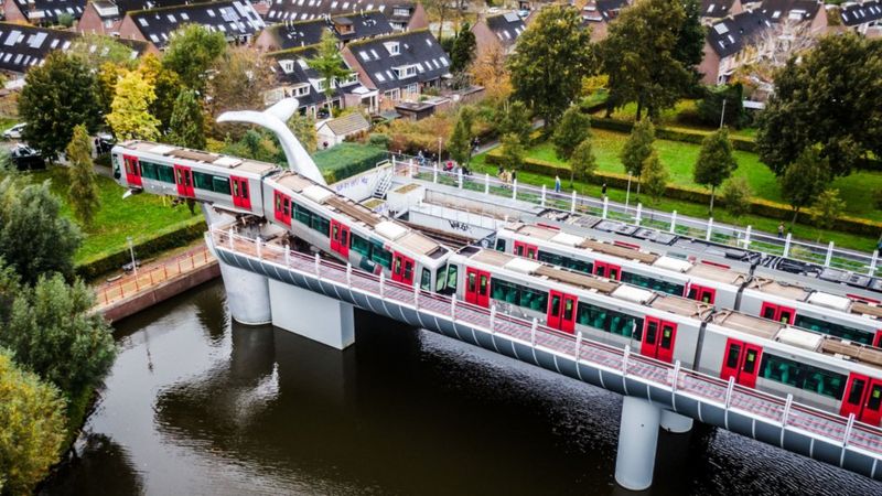 Una 'ballena' evitó un desastre en un tren de Holanda. Y es que, luego de que uno de estos transportes se descarrilara, una escultura de la forma del animal marino evitó que este cayera al agua, lo que hubiera provocado una tragedia.
