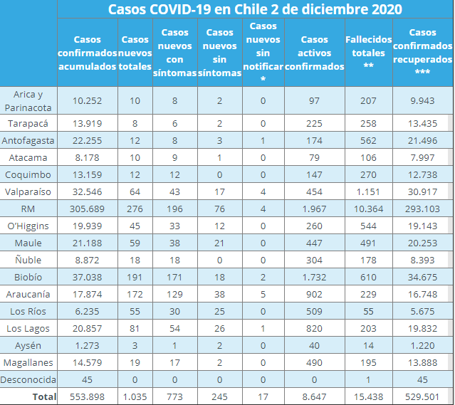 Te puede interesar: Martes 1 de diciembre: 1.119 nuevos casos y 20 fallecidos por Covid-19
