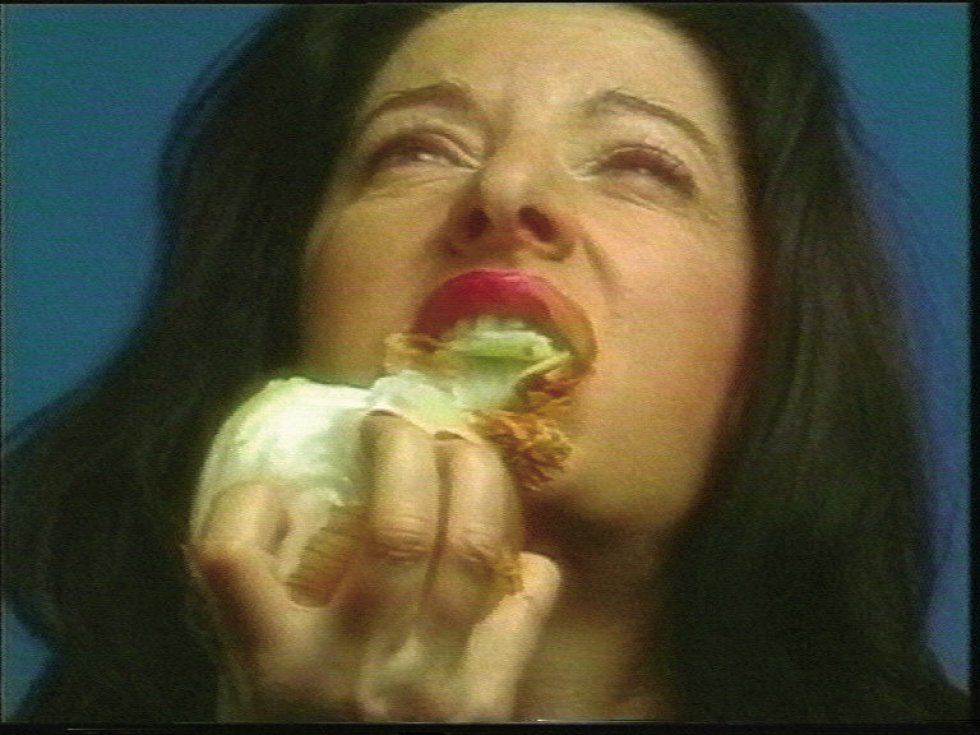 Performance en la que la artista experimenta sensaciones con una cebolla grande.