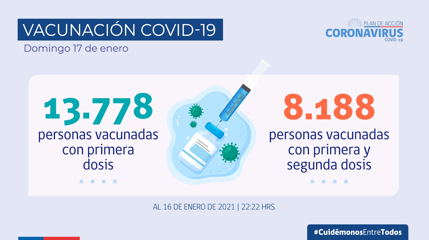 Sobre el proceso de inoculación en el país, se señaló que ya 13.778 personas han recibido la primera dosis. Así mismo, se informó que 8.188 sujetos han recibido tanto la primera como la segunda dosis de la vacuna contra el coronavirus.
