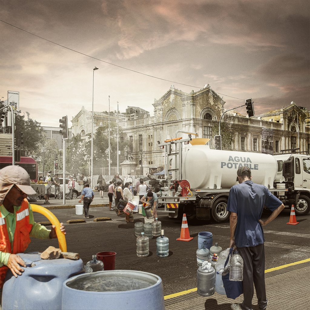 Más de 20 distritos electorales poseen conflictos socio ambientales asociados al agua. Con esto en mente, y con una próxima elección constituyente, Greenpeace Chile decidió graficar cómo lucirían algunos íconos urbanos si la escasez hídrica y los conflictos asociados al agua siguen en alza.