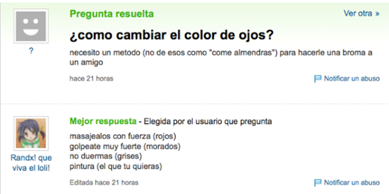 Sobre todo gracias a las ingeniosas respuestas que salían, donde se aprovechaba el ingenio de los usuarios para dar las más divertidas "soluciones" a las dudas de las personas. Así mismo, algunas preguntas sorprendían con lo disparatadas o increíbles que llegaban a ser.