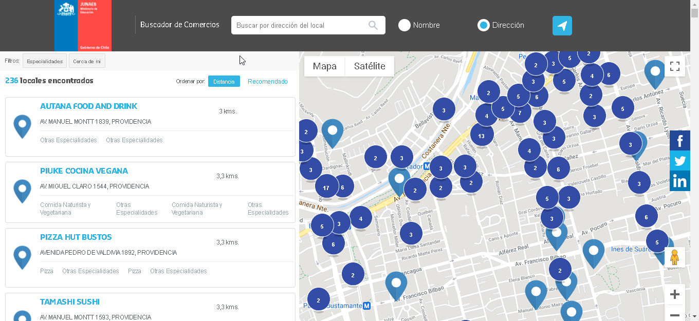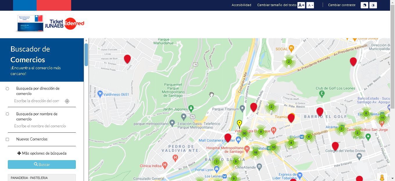 Tanto para Sodexo, Edenred y Amipass, cada proveedor cuenta con un "Buscador de Comercio", el cual de acuerdo a tu posición (o la que prefieras) te indica los locales o supermercados que están habilitados para pagar con tu Junaeb.