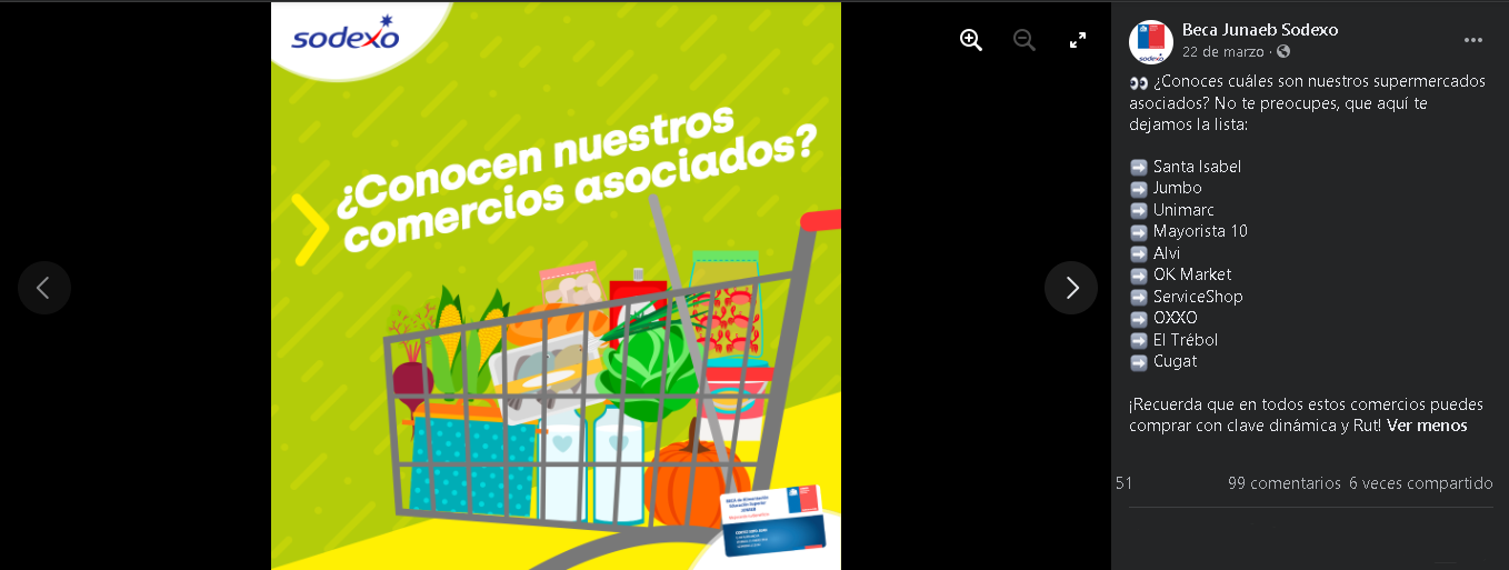 Considerando el contexto actual y que las instituciones de educación superior están cerradas (en lo casinos y comercios de las universidades se permite el uso de la Junaeb), las personas suelen utilizar el beneficio en supermercados, que son los siguientes: