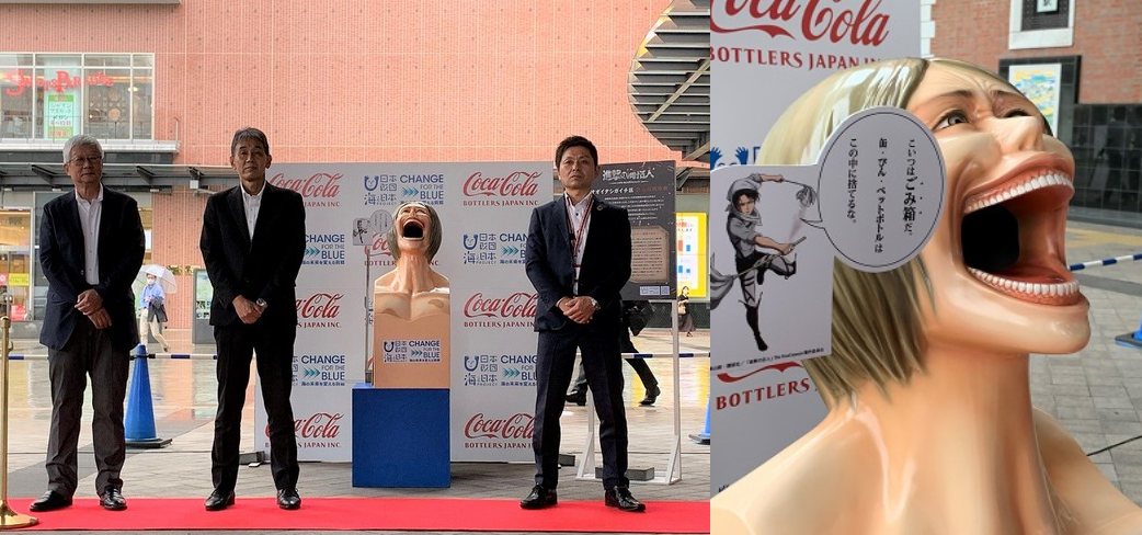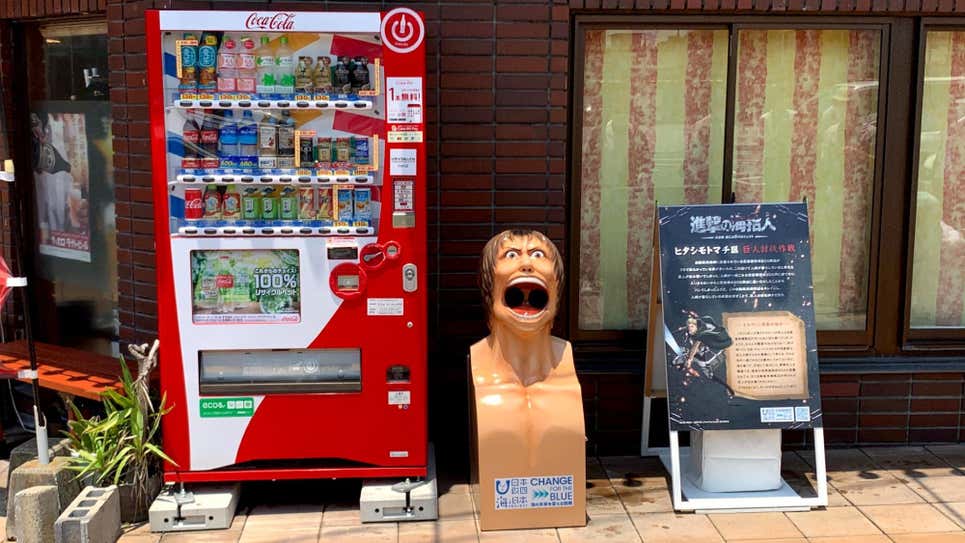 Bien por el planeta, mal por nuestras pesadillas. En una iniciativa entre Coca-Cola Japan y la ciudad de Oita, se instalaron varios basureros caracterizados como los hambrientos titanes del animé Shingeki No Kyojin, conocido también como Attack on Titan.