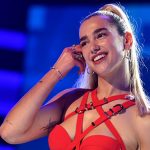 La cantante apareció con un conjunto negro con pinches de colores brillantes que sujetaban su falda ¡Y con verdaderos cortes estratégicos. Todo esto mientras sonaba su gran hit "Physical", de su reciente disco "Future Nostalgia". En cuanto a su maquillaje, utilizó una llamativa sombre de ojos verde lima y mechones rectos.