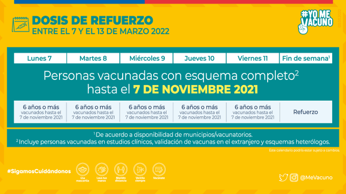 Desde el lunes 7 de marzo al domingo 13, las personas de 18 o más años que hayan recibido su Dosis de Refuerzo hasta el 12 de septiembre de 2021, podrán recibir su cuarta dosis.