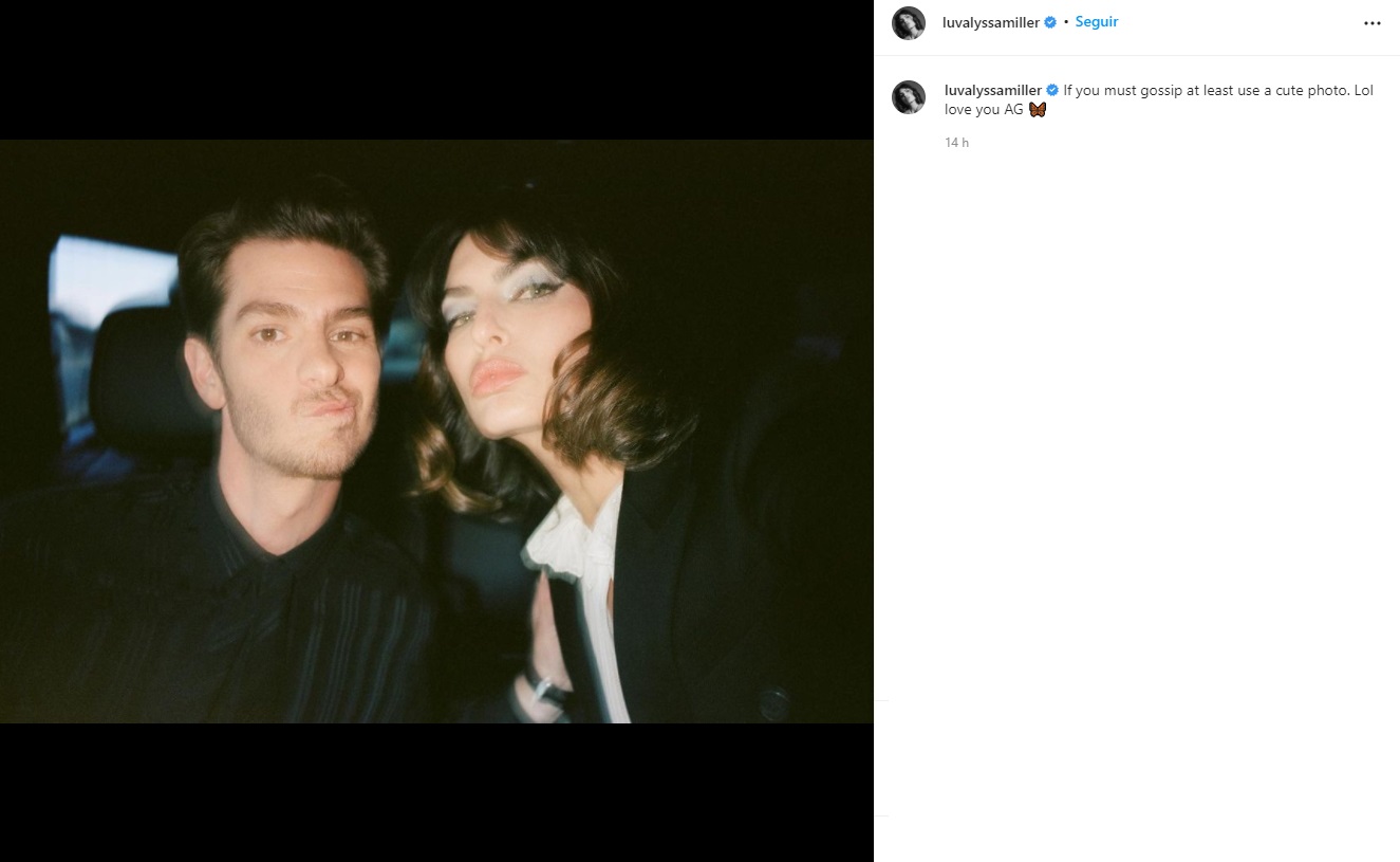 "Si van a especular, al menos usen una linda foto. Jaja te amo, AG", escribió la modelo con una foto junto a Andrew Garfield. Esta rápidamente se viralizó en redes sociales, considerando que no suelen hablar públicamente de su relación.