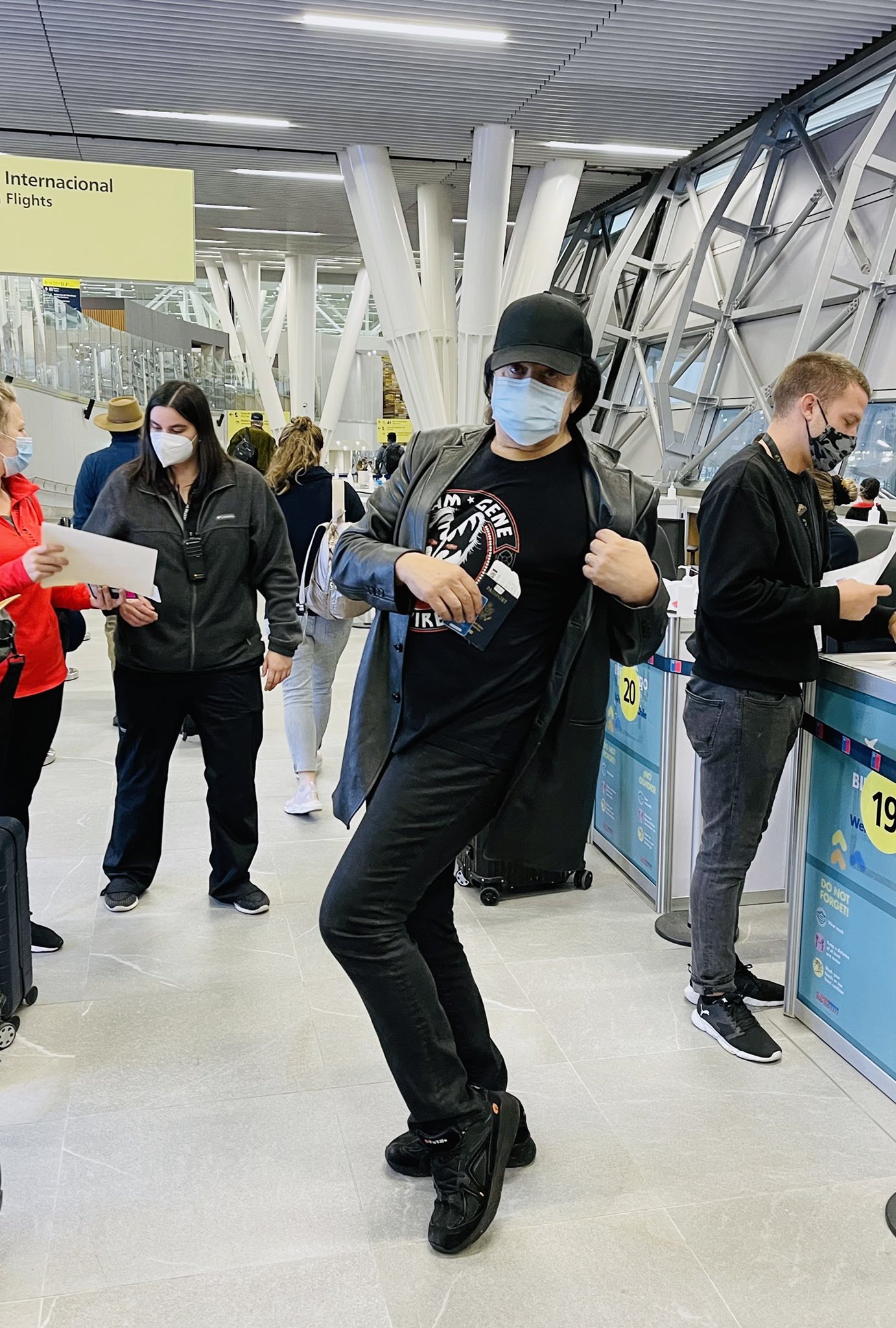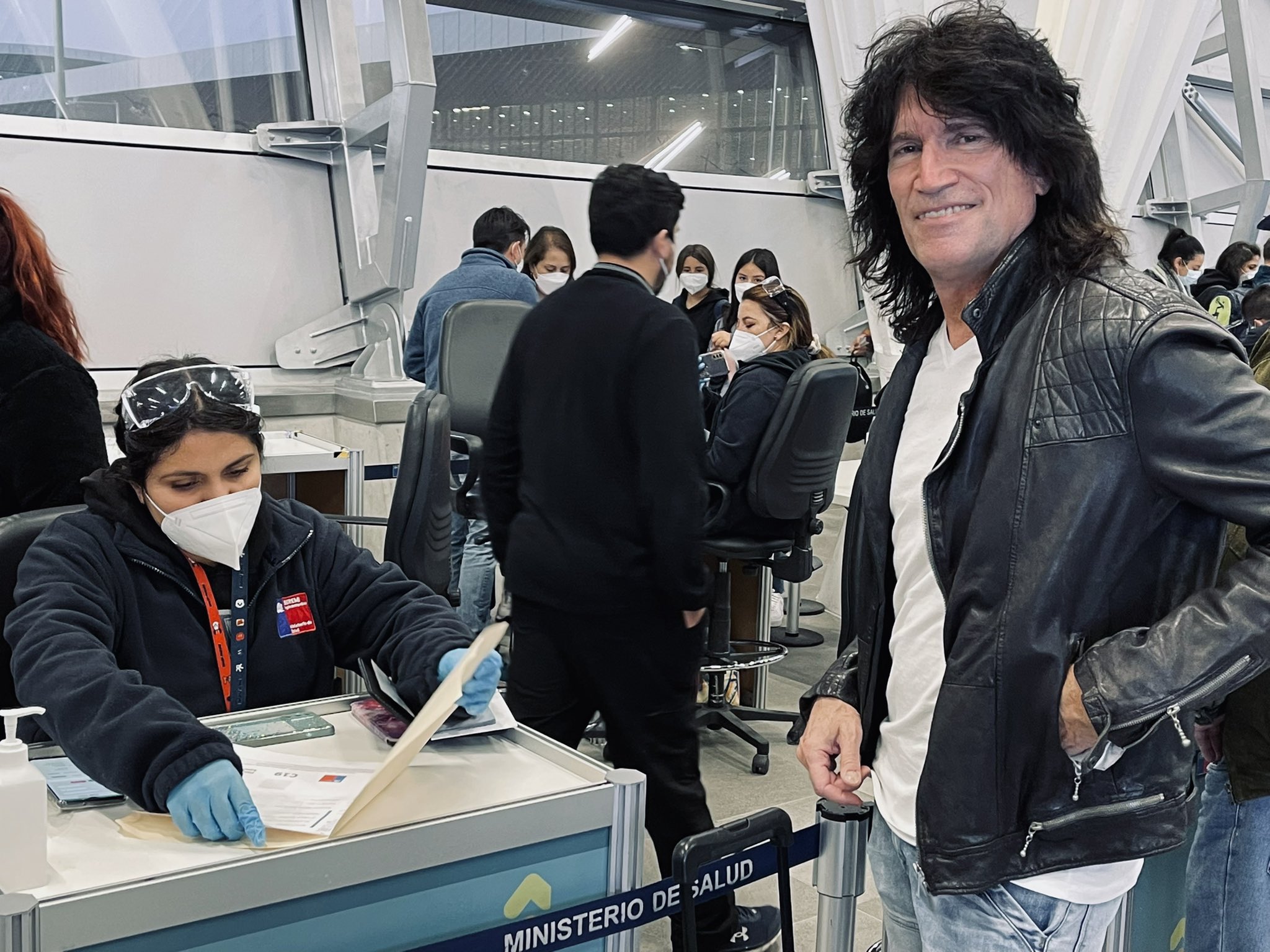 Fue el guitarrista de Kiss, Tommy Thaye, quien saludó a nuestro país con estas fotos. "Llegando a Chile", escribió el músico compartiendo fotos desde el aeropuerto. Además, se les pudo ver haciendo el protocolo sanitario de entrada al país.