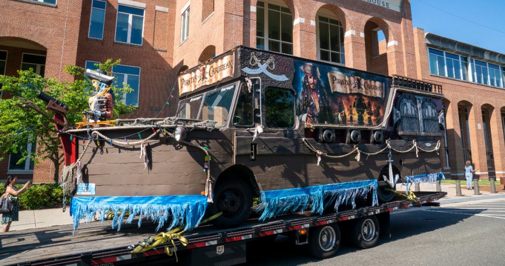 El transporte en cuestión, parecía verse como una casa rodante decorada que se veía como una especie de barco pirata. Esto con decoraciones de un océano falso y un póster oficial de la película de Disney.