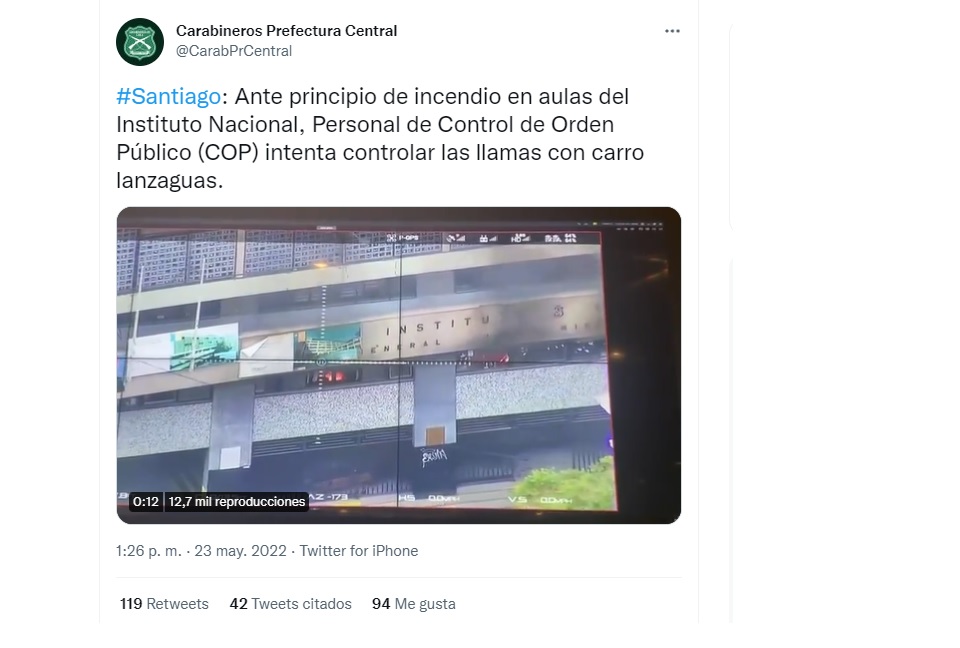 — Cuerpo de Bomberos de Santiago (@cbsantiago) May 23, 2022