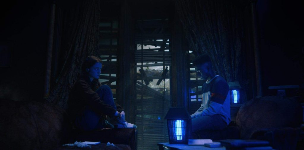 Mientras tanto, Mike (Finn Wolfhard) está tratando de encontrar aquella guarida donde se encuentra su novia. Este viaja en la parte trasera de la camioneta de Argyle (Eduardo Franco) junto a Will (Noah Schnapp) y Jonathan (Charlie Heaton).