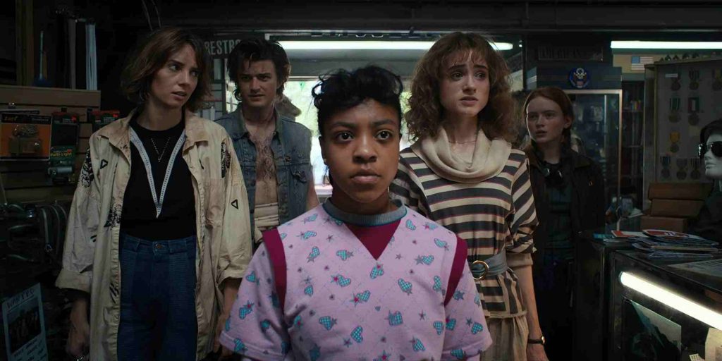 Y afuera del Upside Down, Eddie (Joe Quinn), Steve (Joe Keery), Nancy (¡Sobrevivió a Vecna!) (Natalia Dyer) y Robin (Maya Hawke) se han vuelto a unir con Dustin (Gaten Matarazzo), Lucas (Caleb McLaughlin), Max (Sadie Sink) y Erica (Priah Ferguson) quizás están planeando qué hacer con Vecna (Jamie Campbell Bower).