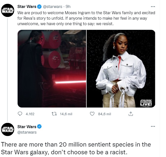 "Si estás mandando estos mensajes, para mi no eres un fanático de Star Wars. No hay lugar para el racismo en este mundo. Y apoyo totalmente a Moses", continuó el actor en el video que recibió más de 8 millones de reproducciones.