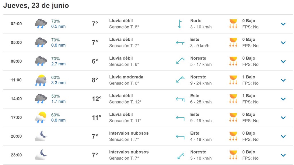 Más fuerte podría ser la lluvia en el jueves de esta semana, extendiéndose hasta la tarde/noche de esa jornada. Nuevamente, se espera que sea fuera del sector urbano de la RM, pero Santiago también podría recibir gotas leves en estos días.