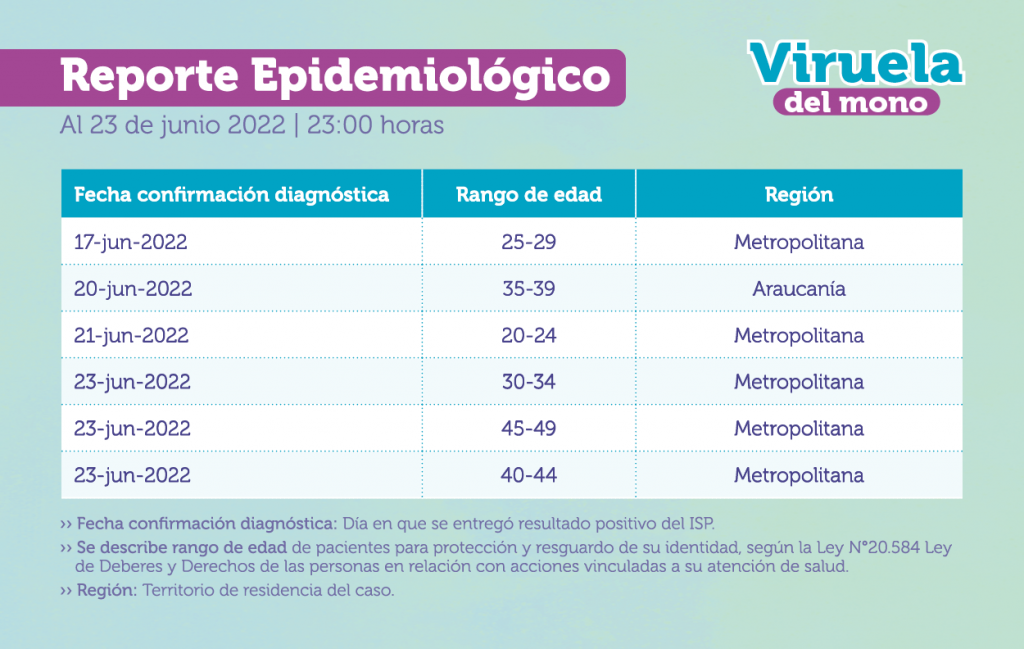 “El tema de las enfermedades emergentes y en particular la viruela del mono, que fue alertada por la OPS y la OMS (Organización Mundial de la Salud) el pasado 13 de mayo, lo que ha traído en los países es una conducta de prevención y responsable con la vigilancia. Y en Chile en particular, que tenemos una historia de respuesta epidemiológica muy importante y bien hecha, no ha sido muy distinto en esta ocasión”. Añadió la secretaria de Estado.