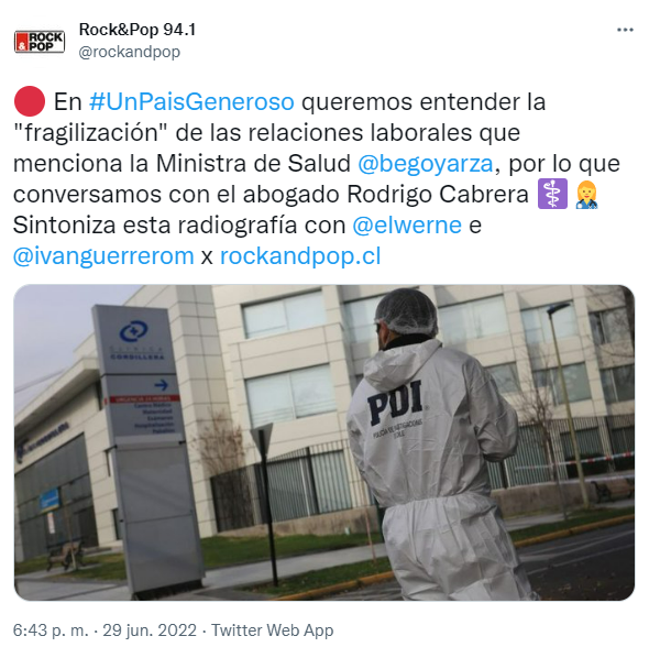Asimismo, Cabrera explicó que en el área privada ocurre una gran varidad de situaciones, en donde se obliga a los funcionarios de salud a generar sociedades y que los trabajadores no tengan relación directa con los prestadores. Lo que influye en una situación similar a la de los trabajadores con honorarios.