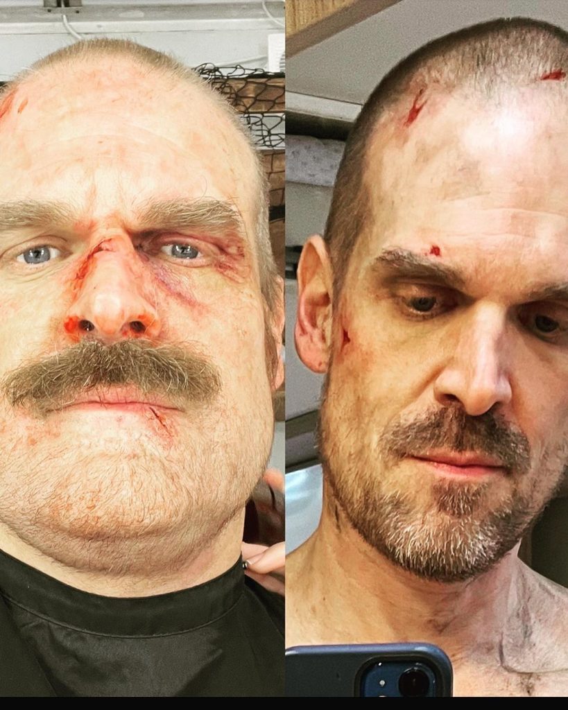 En su cuenta de Instagram, el actor escribió lo siguiente adjuntando una fotografía del proceso. “Al final de la temporada 3, les dije a los hermanos Duffer que deberíamos filmar los flashbacks posteriores a la ‘muerte’, porque iba a perder peso y habría problemas de continuidad. Pero aún no se habían escrito los episodios. Por suerte, tuvimos al milagroso equipo que me puso la prótesis. Los resultados hablan por sí mismos”.