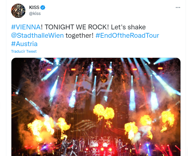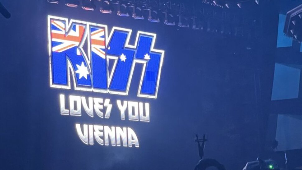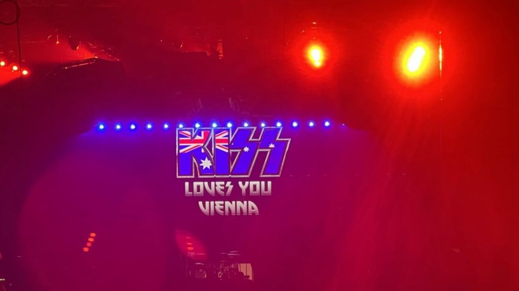 Esto ocurrió el pasado fin de semana en el Wiener Stadthalle. Donde el cuarteto de rock que recientemente pasó por nuestro país compartió en unas pantallas gigantes un logo con la leyenda: "Kiss Loves You Vienna" (Kiss te ama, Viena), acompañado de la bandera australiana en vez de la austriaca.