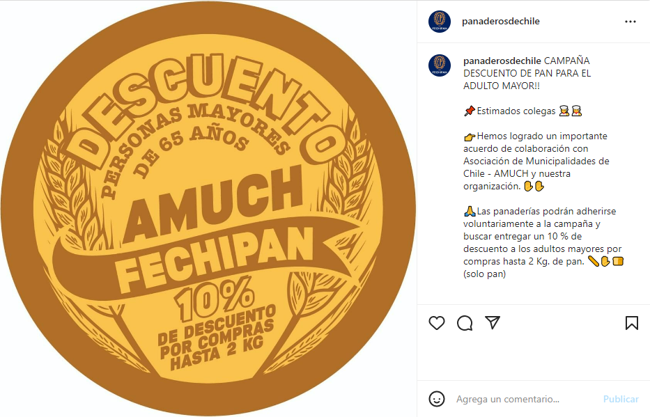 Esta semana, la Asociación de Municipalidades de Chile (Amuch) y la Federación Chilena de Industriales Panaderos (Fechipan) generaron una alianza para otorgar un beneficio para las personas mayores de 65 años. Con el que puedan acceder a una disminución en el precio del pan.