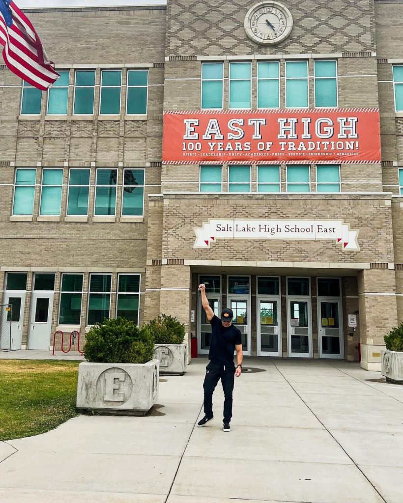 "Don't you... Forget about me (No te olvides de mí) ✊🏼”, escribió el intérprete en una publicación de Instagram este viernes. Donde lo mostraba posando frente a la escuela ubicada en la ciudad Salt Lake (Estados Unidos).