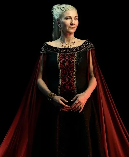 En los libros, Rhaenys nació en el 74 AC y los eventos del episodio uno de la serie tienen lugar en el 112 AC. Sin embargo, parece que la envejecieron para tener una edad similar a la de Corlys.