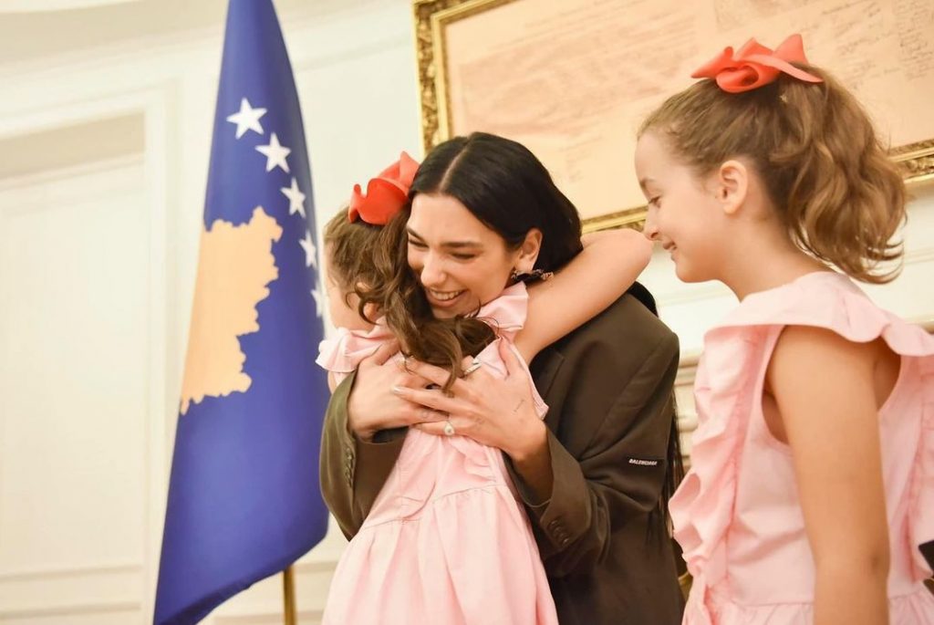 Este viernes -tras la actuación de la cantante en el festival Sunny Hill- la presidenta de Kosovo, Vjosa Osmani, declaró a Dua Lipa como Embajadora Honoraria de la República de Kosovo.