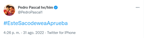 Sin embargo, eso no fue todo, porque la estrella de The Mandalorian (serie del universo de Star Wars), quiso sumarse a un controvertido hashtag en Twitter, el cual contenía un particular chilenismo. Escribiendo el mensaje: "#EsteSacodeweaAprueba".