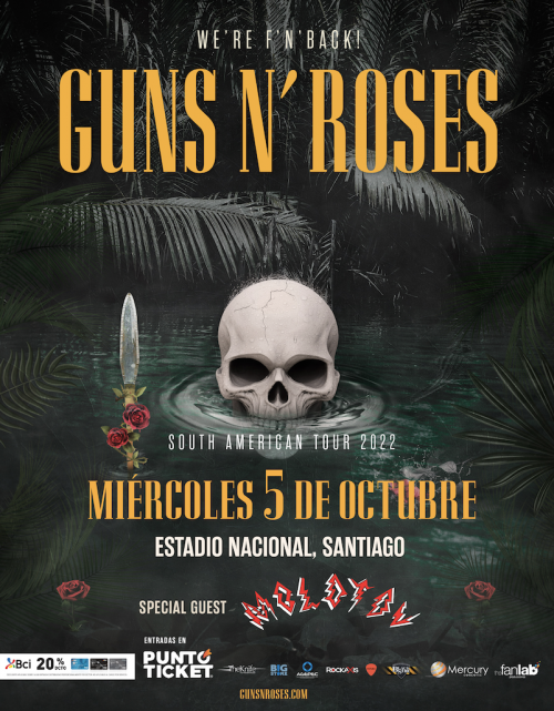 La banda aterriza en Chile gracias al tour “We’re F’N Back!” el que comenzó con gran éxito en julio de 2021. Los primeros conciertos se realizaron en Hersheypark de Hershey, Pensilvania. En Sudamérica, en tanto, además de Chile, Guns N’ Roses ya tiene fechas confirmadas en Brasil y México. Por otro lado, los californianos no vienen solos, sino que además traen como invitado a los mexicanos de Molotov.